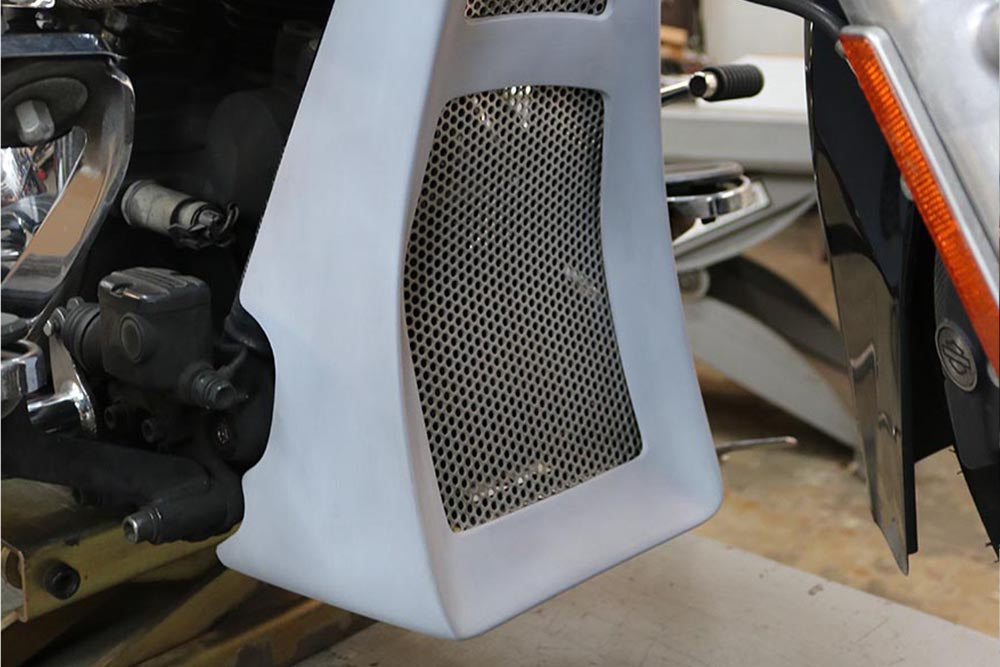 The Bagger Nation Chin Spoiler Adapter allows you to install our wildly popular Swoop Chin Spoiler & Dimple Die Chin Spoilers to your 2009-2016 Touring model in a quick and easy bolt-on installation. It also comes with a hand-formed perforated aluminum lower grill that can be optionally glued in after paint. All the necessary hardware is included.