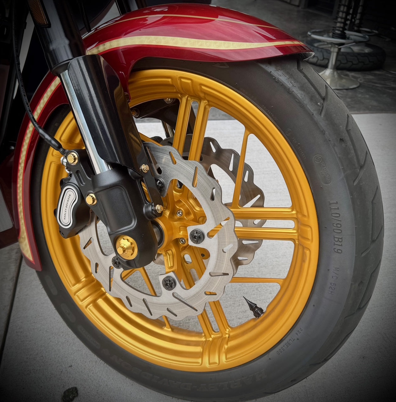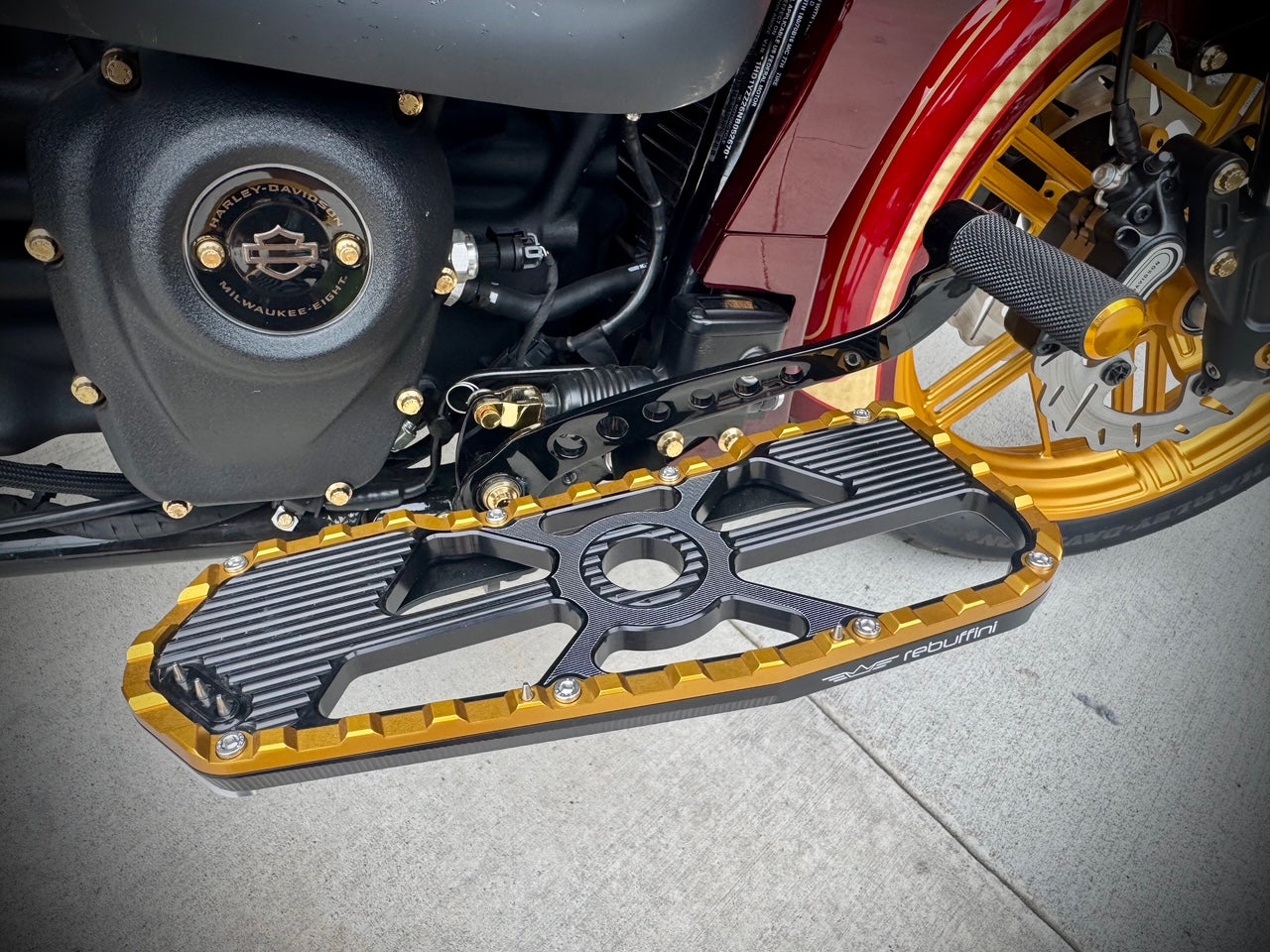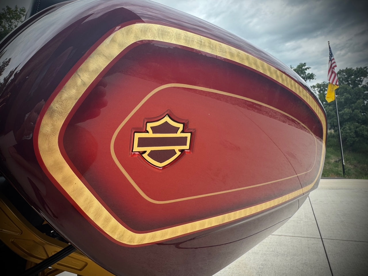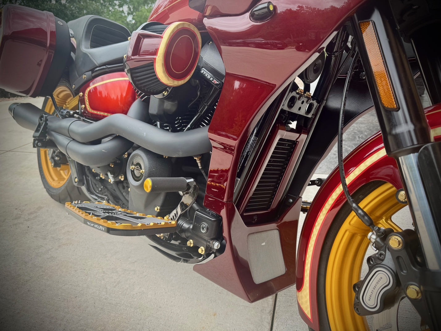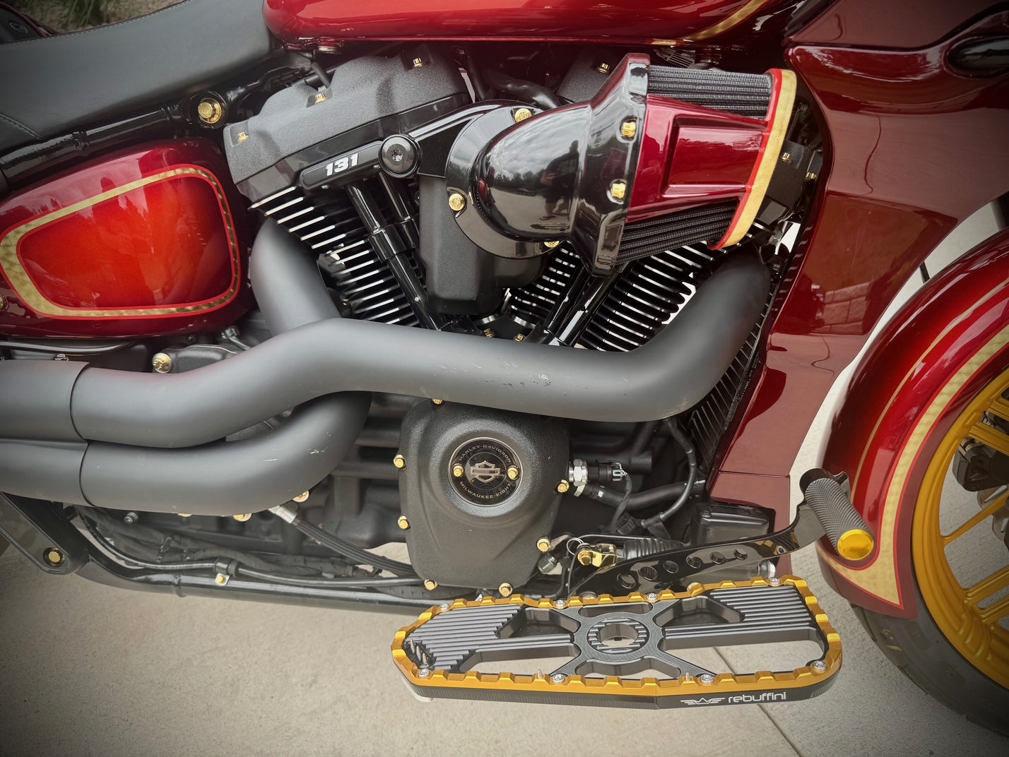 When HD released the first Lowrider ST model, The Diablo Icon edition, the bike took HD enthusiasts by storm! With only 1500 produced, Paul knew he had to have one. Paul grabbed the $37k limited edition Diablo and immediately started making parts for it. Over the next couple years the bike became our display bike at shows and was never ridden. Everyone loved it. Jump forward to November 2024 and Paul decided he wanted to further trick the bike out and make it his Sturgis ride for 2025. A 131 SE engine was ordered, SMT created a killer set of one-off wheels, a Race Bros Moto GP shock and inverted fork was needed and an incredible Trask Performance Billet Swingarm! As the bike started to come together he knew he was gonna go all the way! Custom spun gold leaf paint, Bamco gold hardware, Rebuffini footboards. Well, the results are nothing less than stunning! The bike came out so killer that Paul was afraid he'd trash it on a Sturgis ride. So here she sits, over $75k invested and only 300 miles on her odometer! Here's your chance to own a one of 1500 Icon edition HD Diablo that Paul has turned into a 1 of 1... Everything is new and she's ready to scorch the highway!