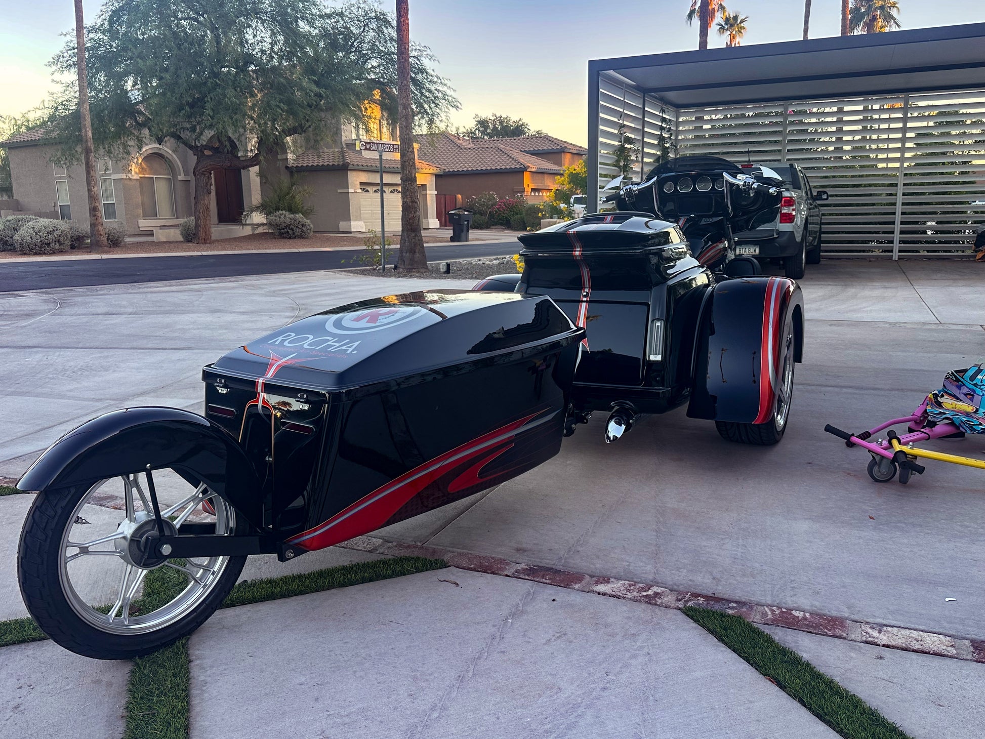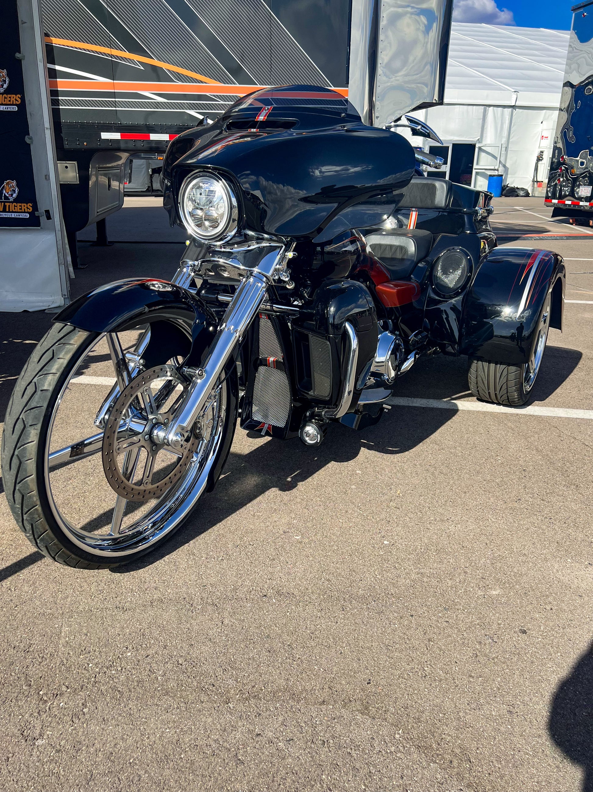 Harley-Davidson / Paul Yaffe 2022 Full Custom Chopper, Tri Glide with Bagger Nation 26" wheel, 20" matching rear wheels and full custom body! Also includes color matched Trailer!