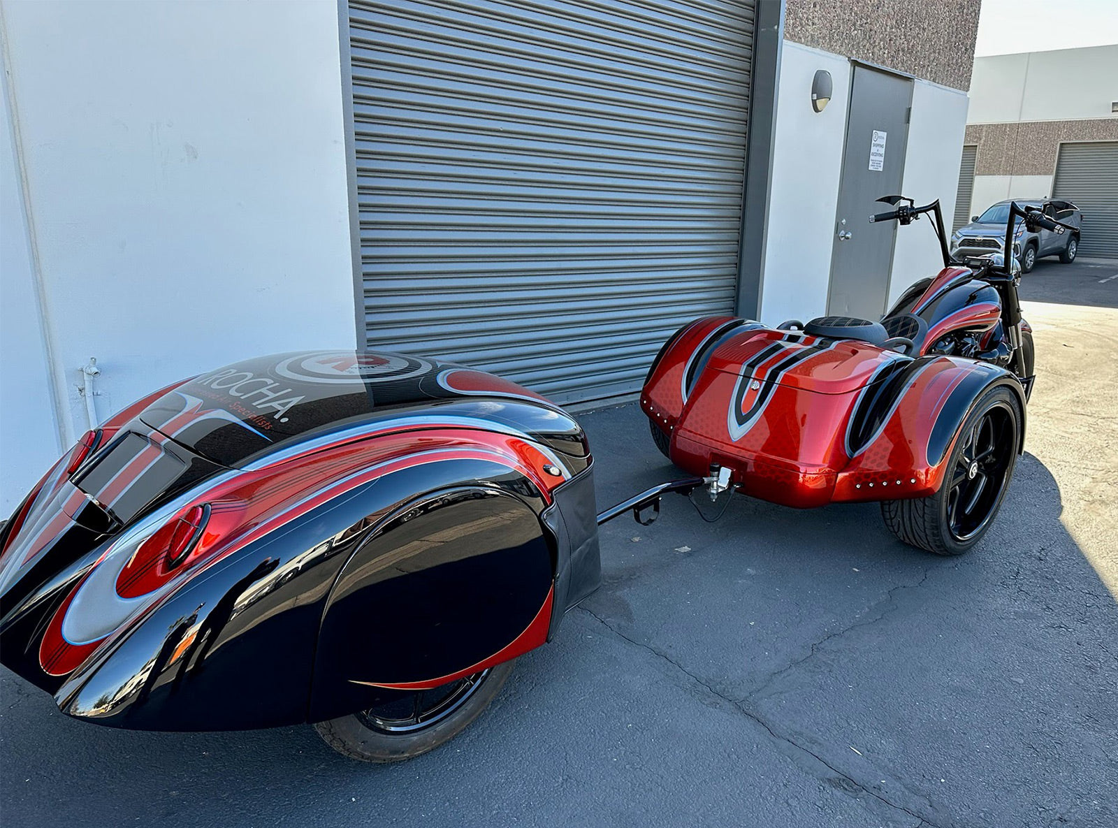 Harley-Davidson / Paul Yaffe 2022 Full Custom Freewheeler with Bagger Nation SRT Wide Performance Tire Kit & Matching Bushtec Trailer