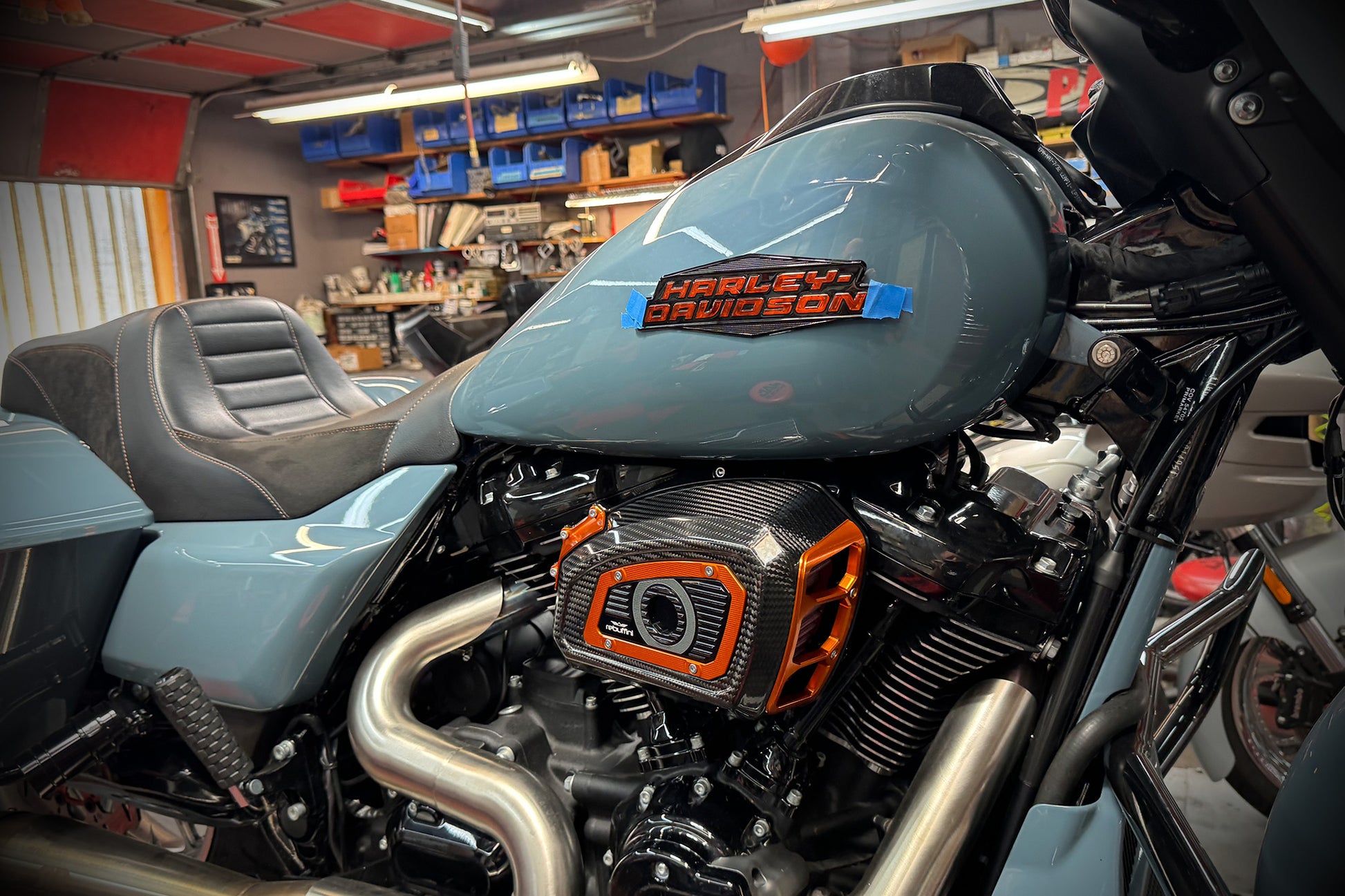 finish his vision with orange & silver custom graphics, Rebuffini Air Cleaner (carbon fiber with billet anodized orange accents) and a Hoffman Designs carbon fiber dash and satin billet fuel door ($7k additional)
