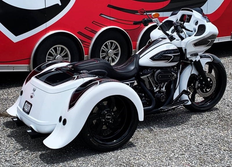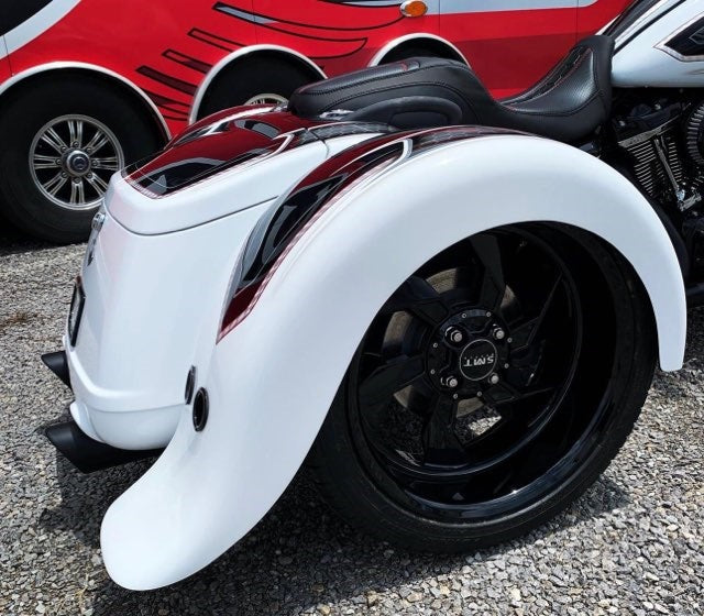 Bagger Nations Swoop Rear Fenders will transform your ordinary-looking Freewheeler® or Road Glide 3® into a fat fender hot rod! Our direct bolt-on stretched rear fenders remind us of a mid-century custom street rod cruising the boulevard! With the H-D Trike platforms rapidly gaining in popularity, there are more trikes than ever out on the road. Set your Trike apart!