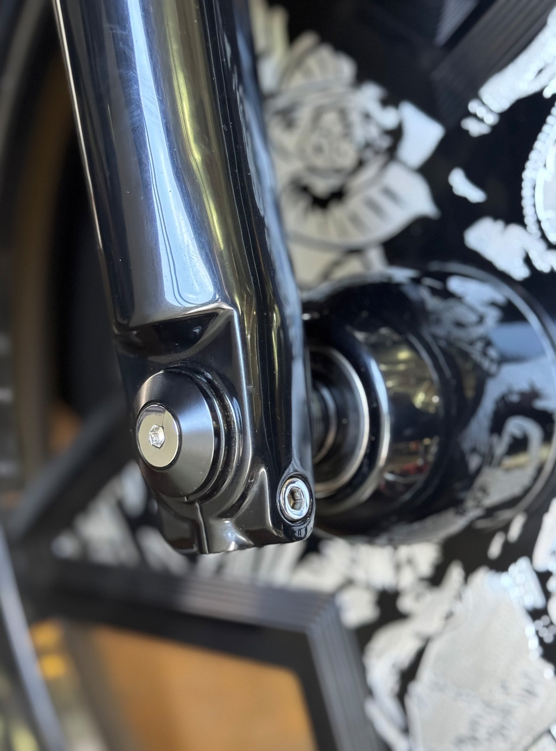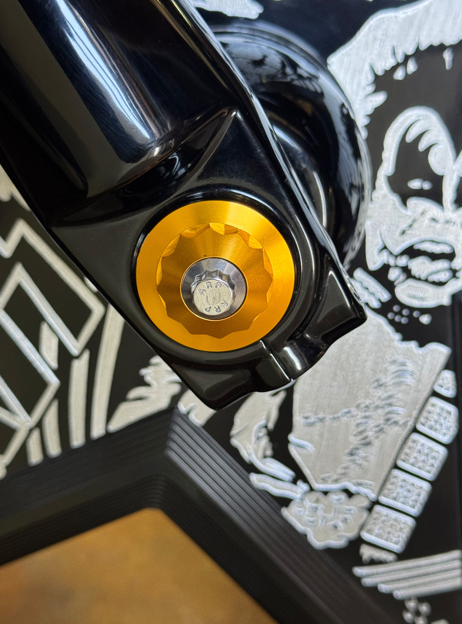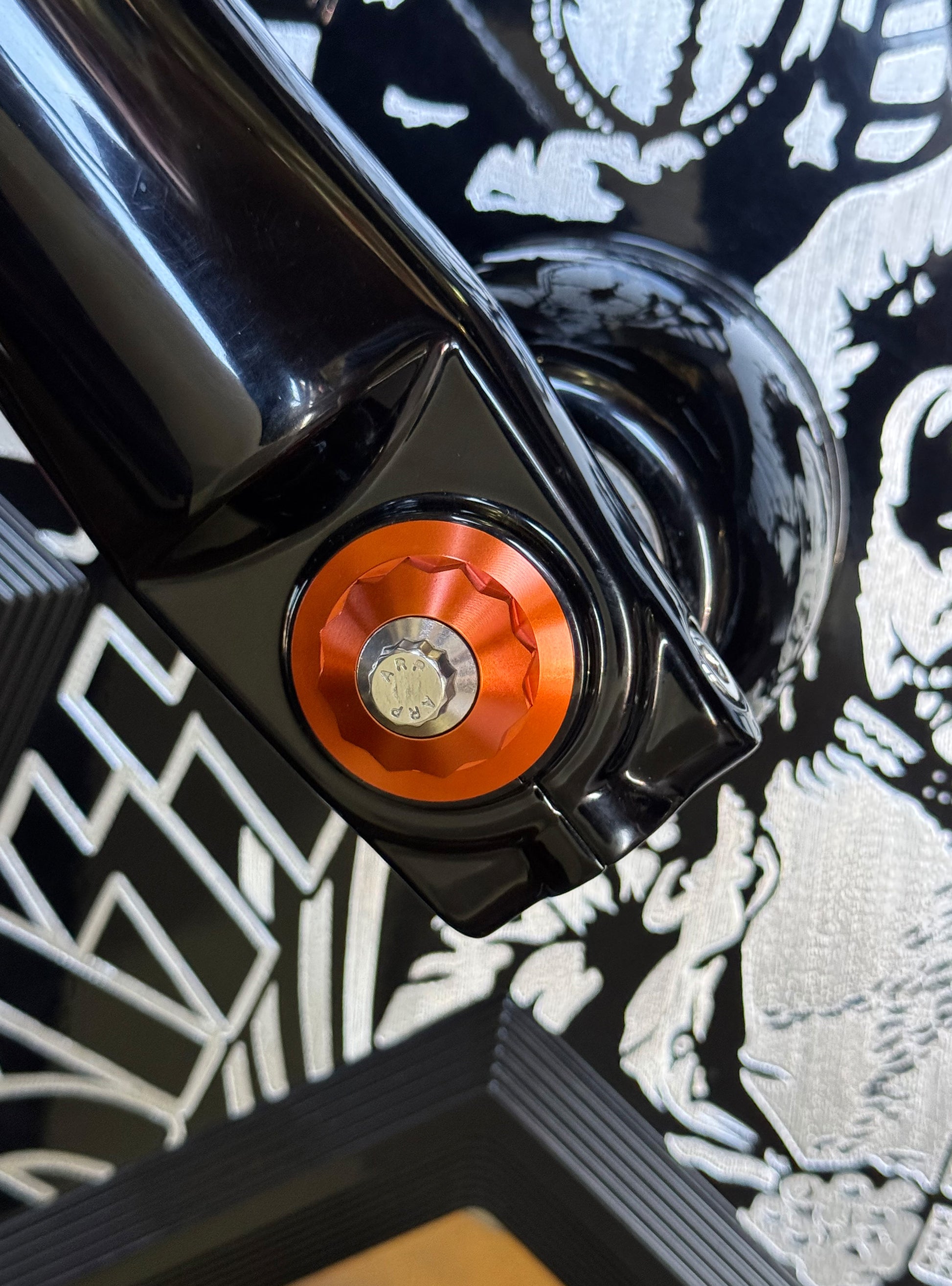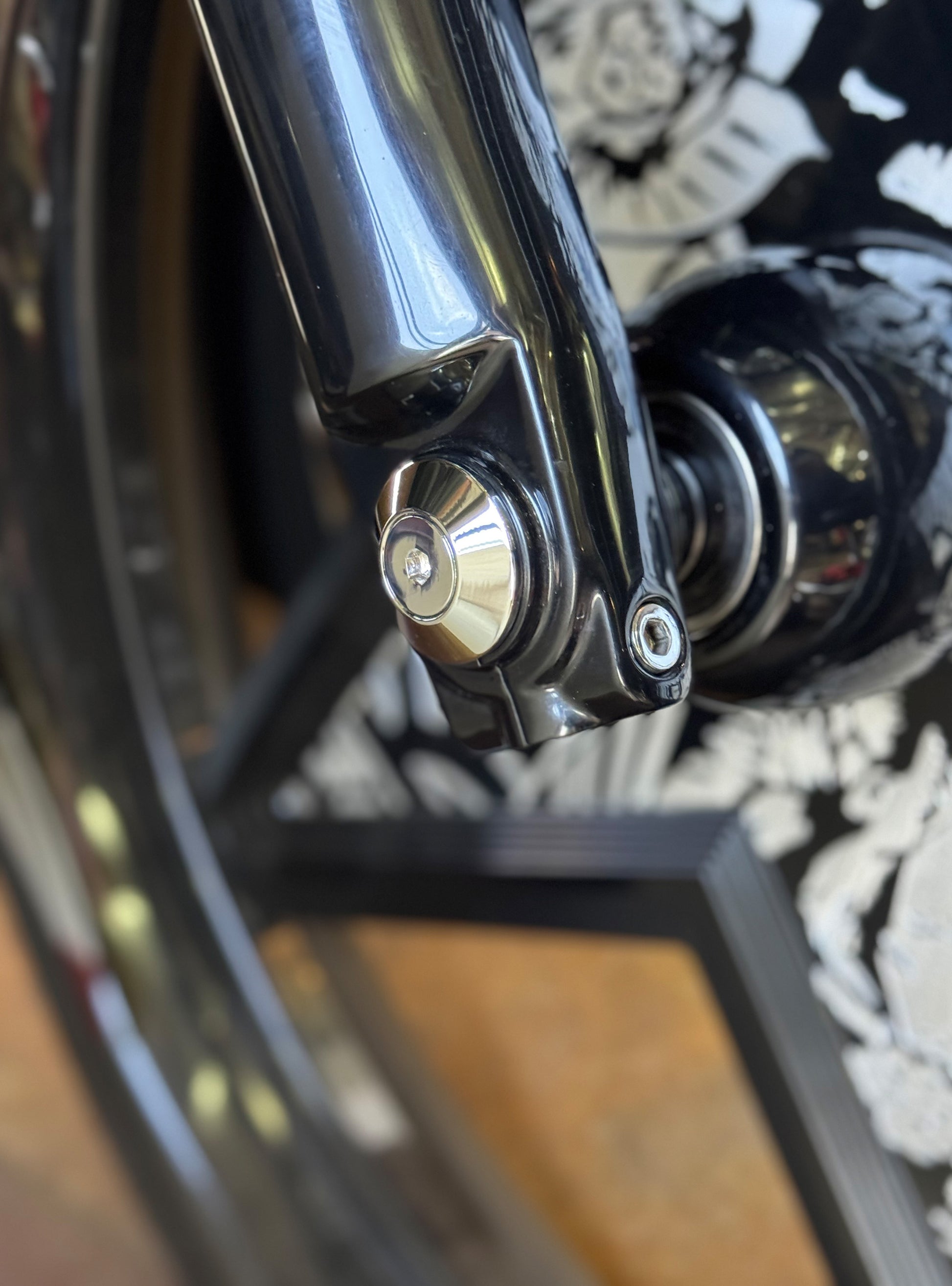 The "Yaxle" Custom Front Axle makes your boring stock forks look completely custom by removing the big ugly stock axle and replacing it with our killer performance minded custom end caps.