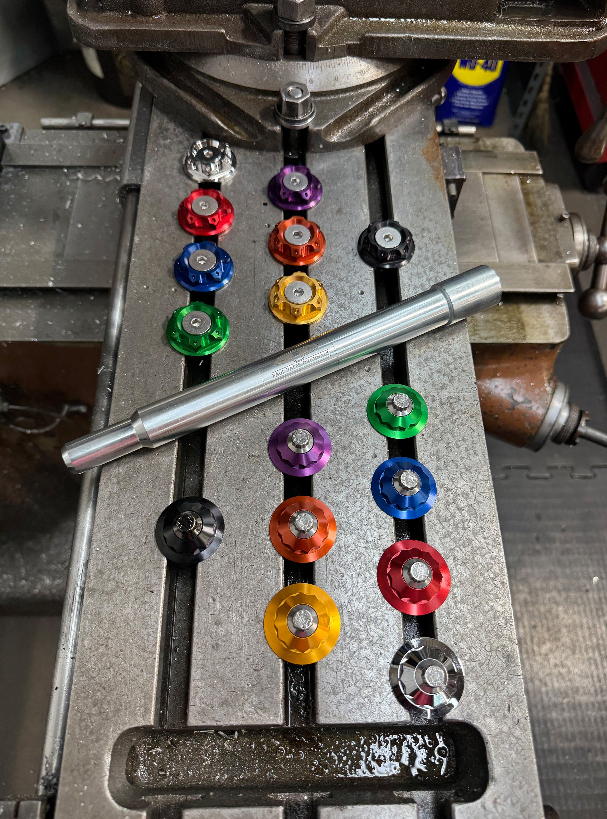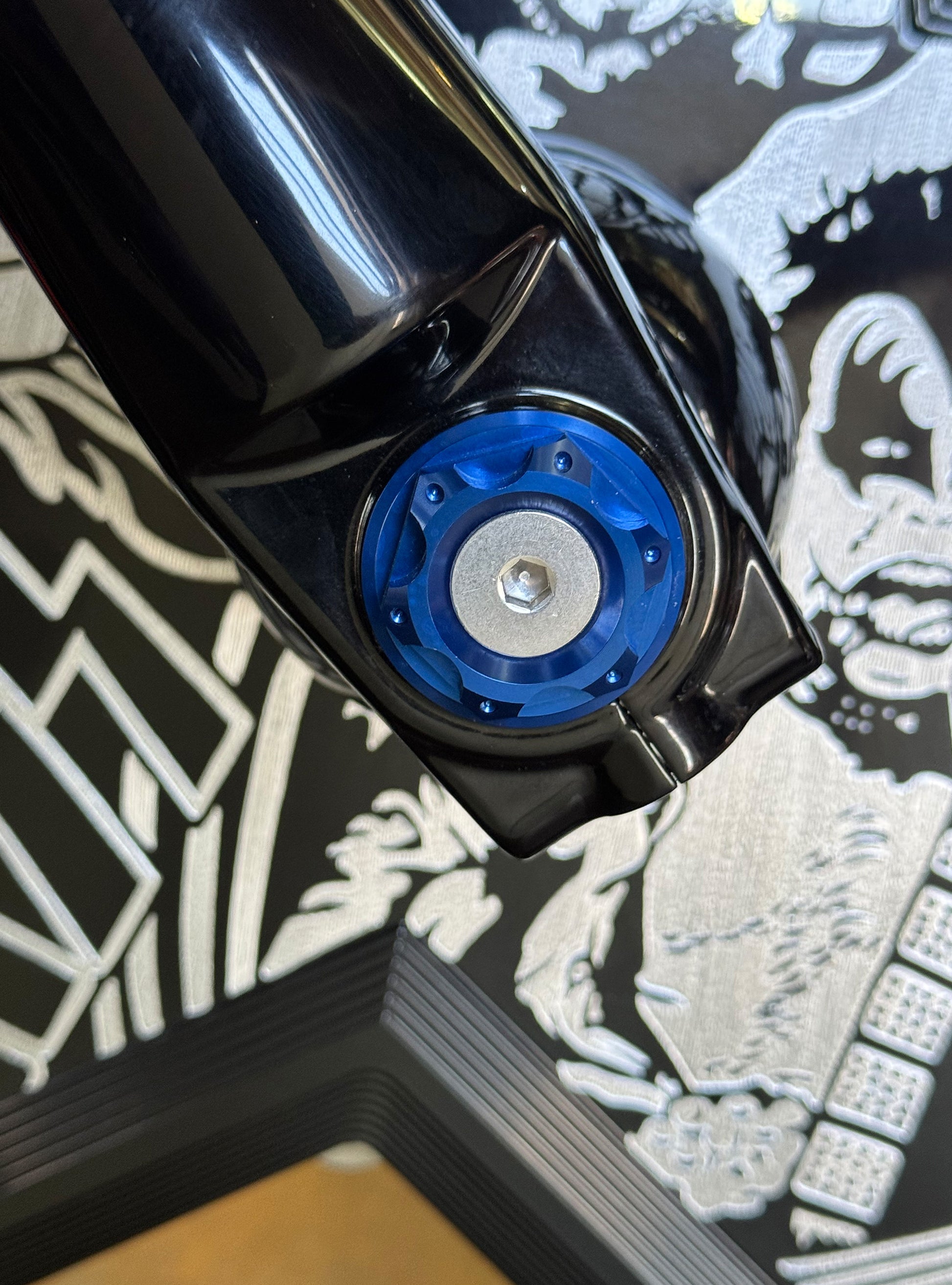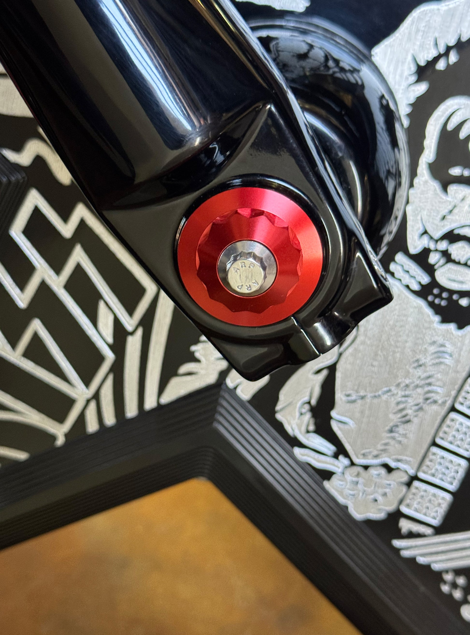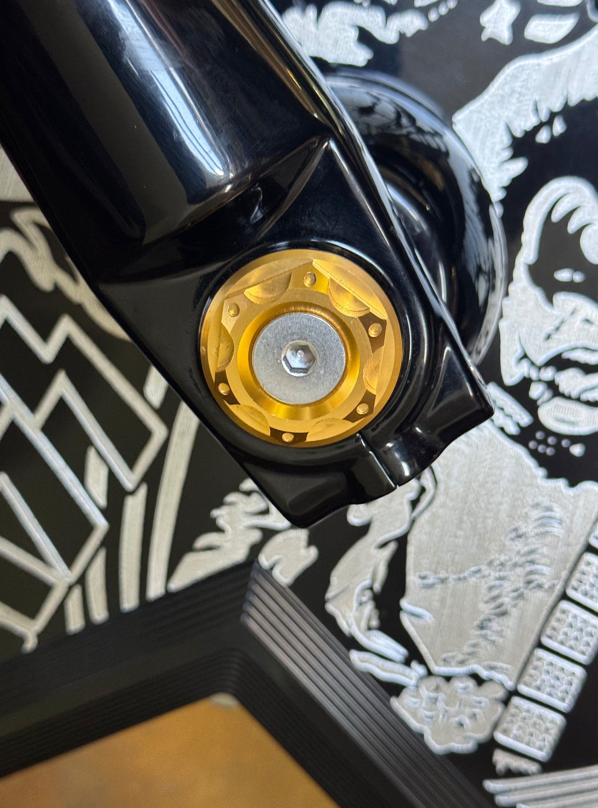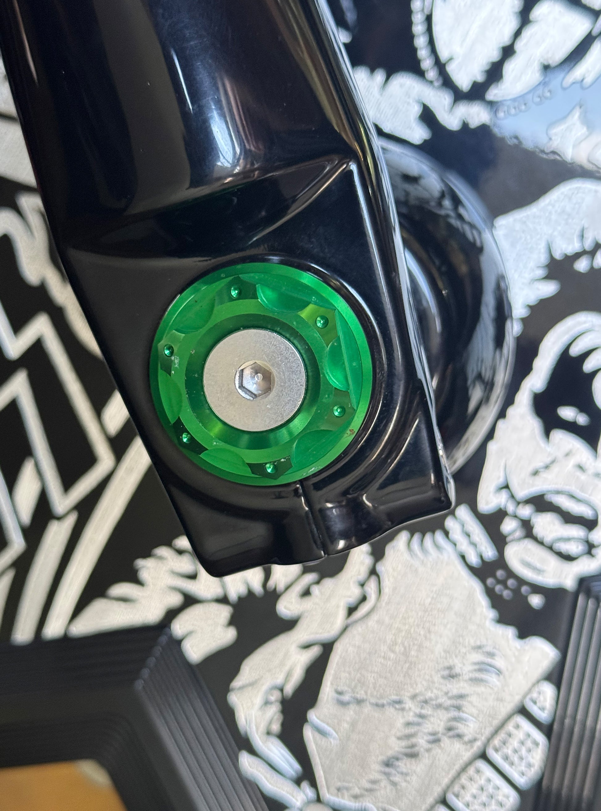 The "Yaxle" Custom Front Axle makes your boring stock forks look completely custom by removing the big ugly stock axle and replacing it with our killer performance minded custom end caps.