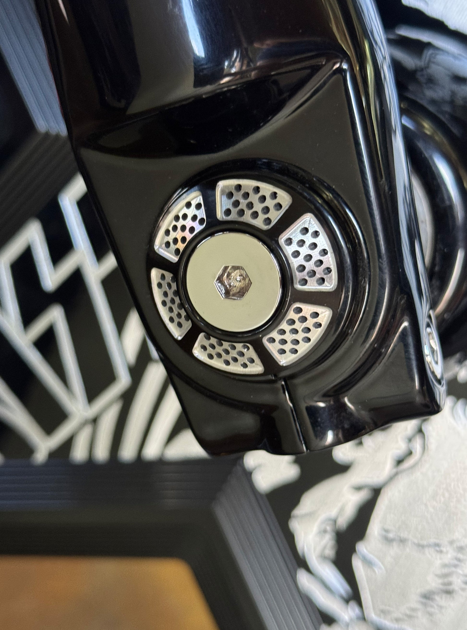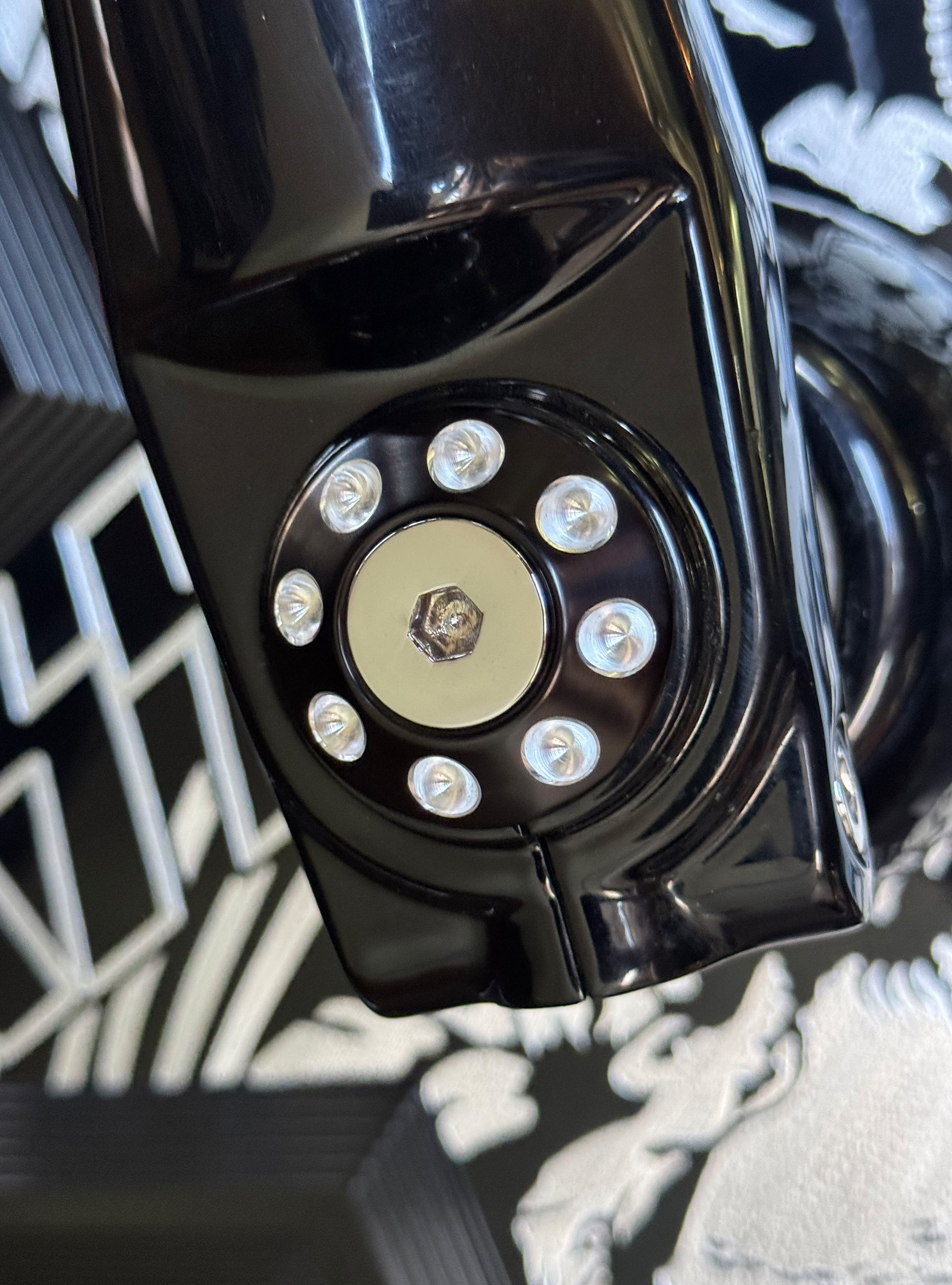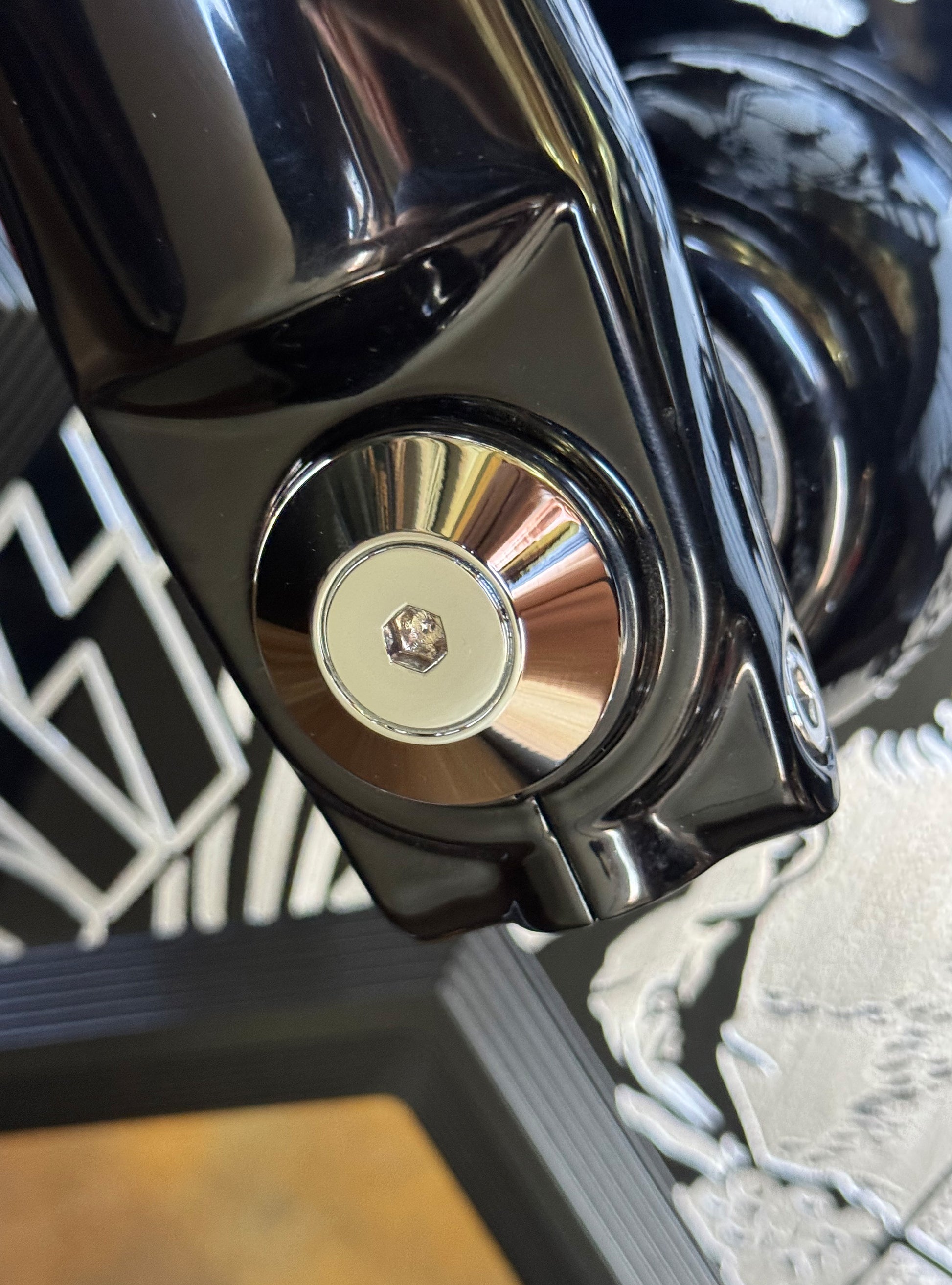 The Bagger Nation "Yaxle" is a complete CNC lathe turned tool steel replacement front axle that features your choice of our killer designer end caps available in 6 styles and 8 color finishes. The latest addition to our Yaxle line up is the performance minded "Turret" and "Twelve Point" designs. These awesome new designs include stainless hardware in either flat head or ARP 12 point styles depending on your choice. We all know that the huge stock axle nut and protruding end are both ugly as well as an often overlooked detail when customizing your front end. Yaxles are available to fit most touring models 1986 thru 2023.