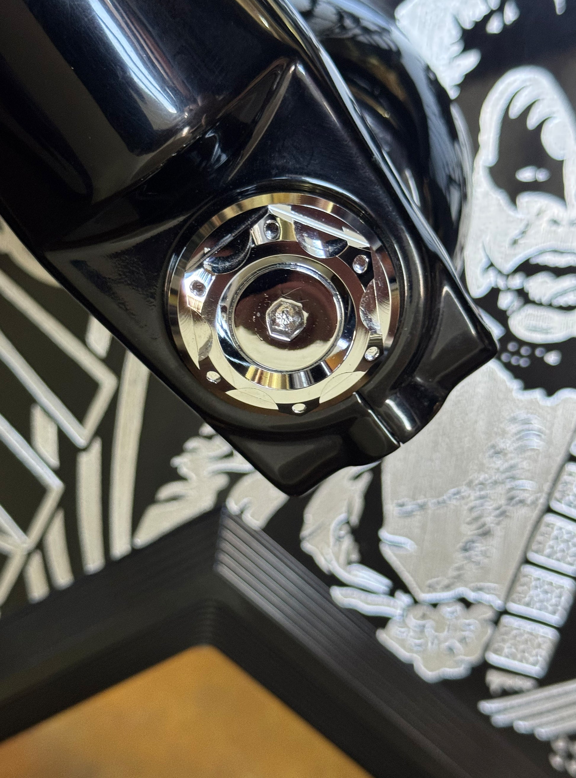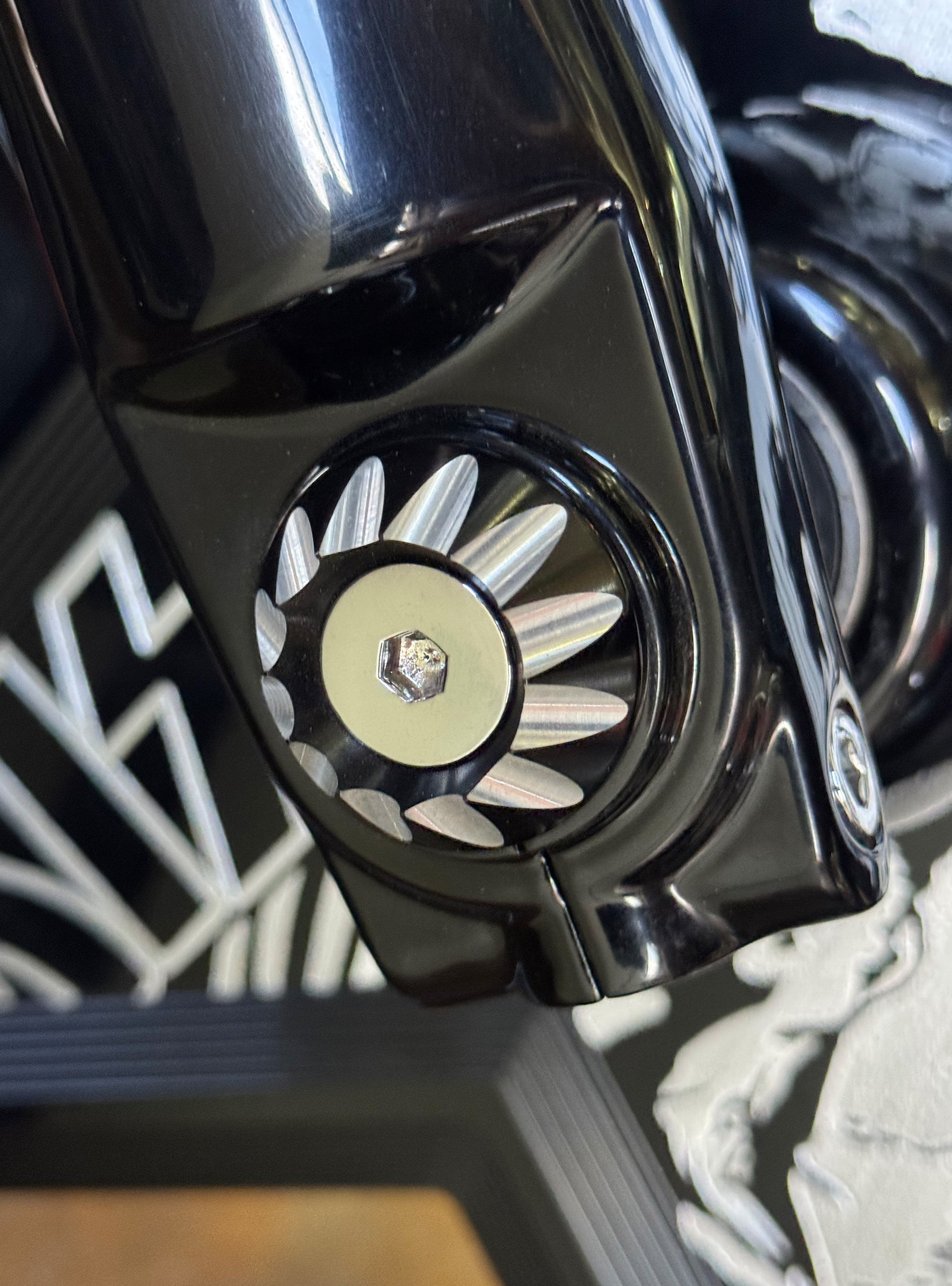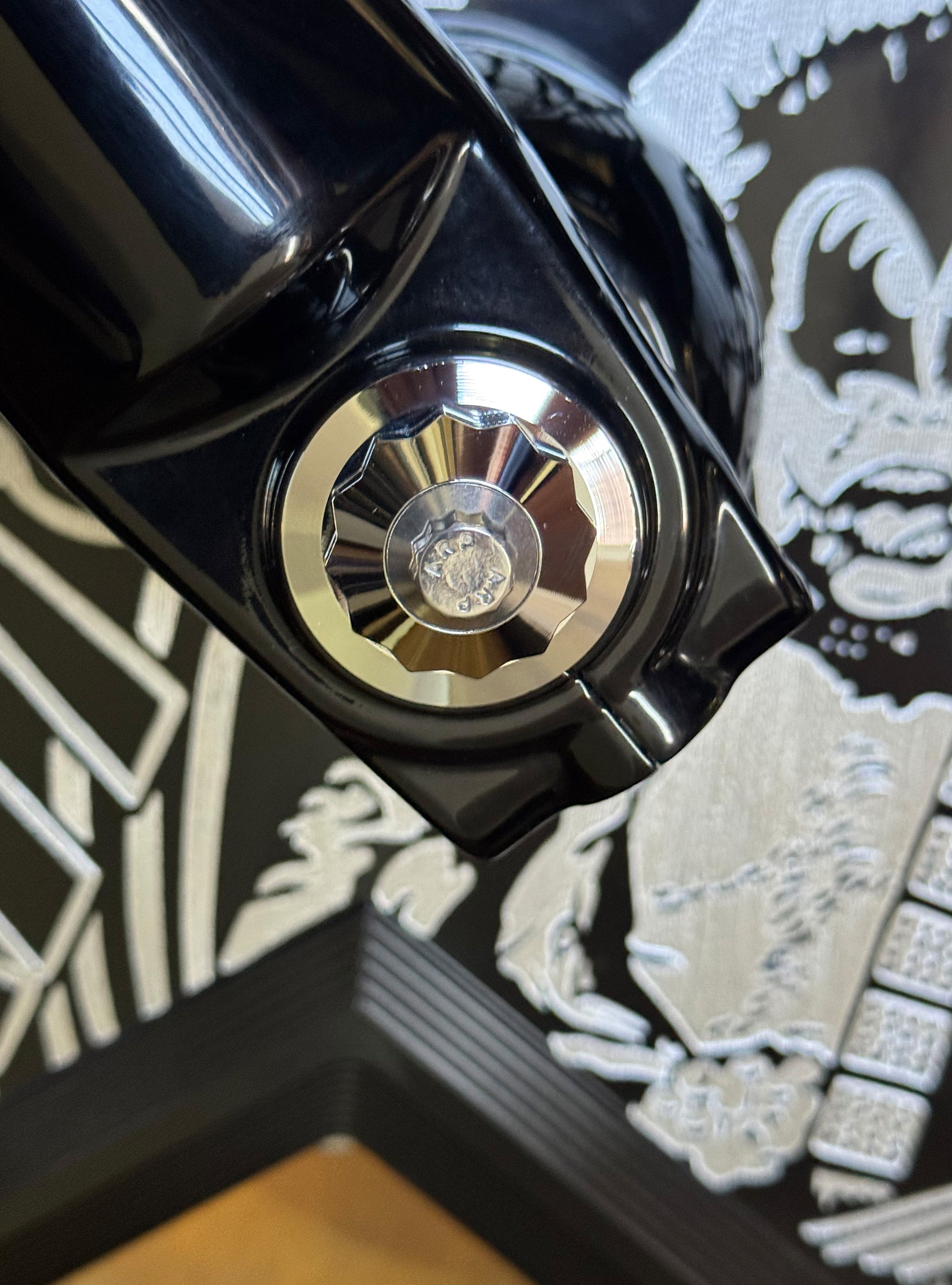 The Bagger Nation "Yaxle" is a complete CNC lathe turned tool steel replacement front axle that features your choice of our killer designer end caps available in 6 styles and 8 color finishes. The latest addition to our Yaxle line up is the performance minded "Turret" and "Twelve Point" designs. These awesome new designs include stainless hardware in either flat head or ARP 12 point styles depending on your choice. We all know that the huge stock axle nut and protruding end are both ugly as well as an often overlooked detail when customizing your front end. Yaxles are available to fit most touring models 1986 thru 2023.